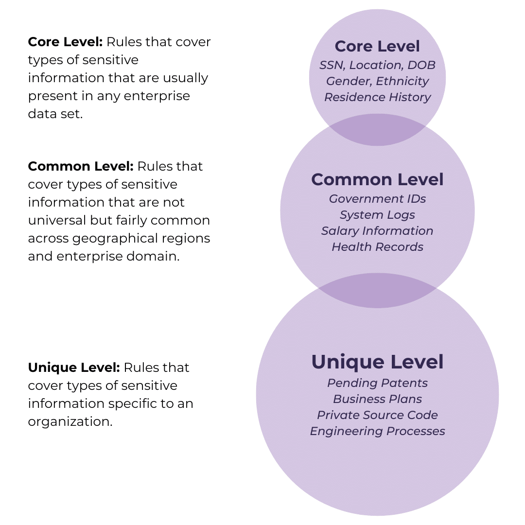 • Core Level: Includes fundamental organizational knowledge and critical business rules, defined with input from domain SMEs.