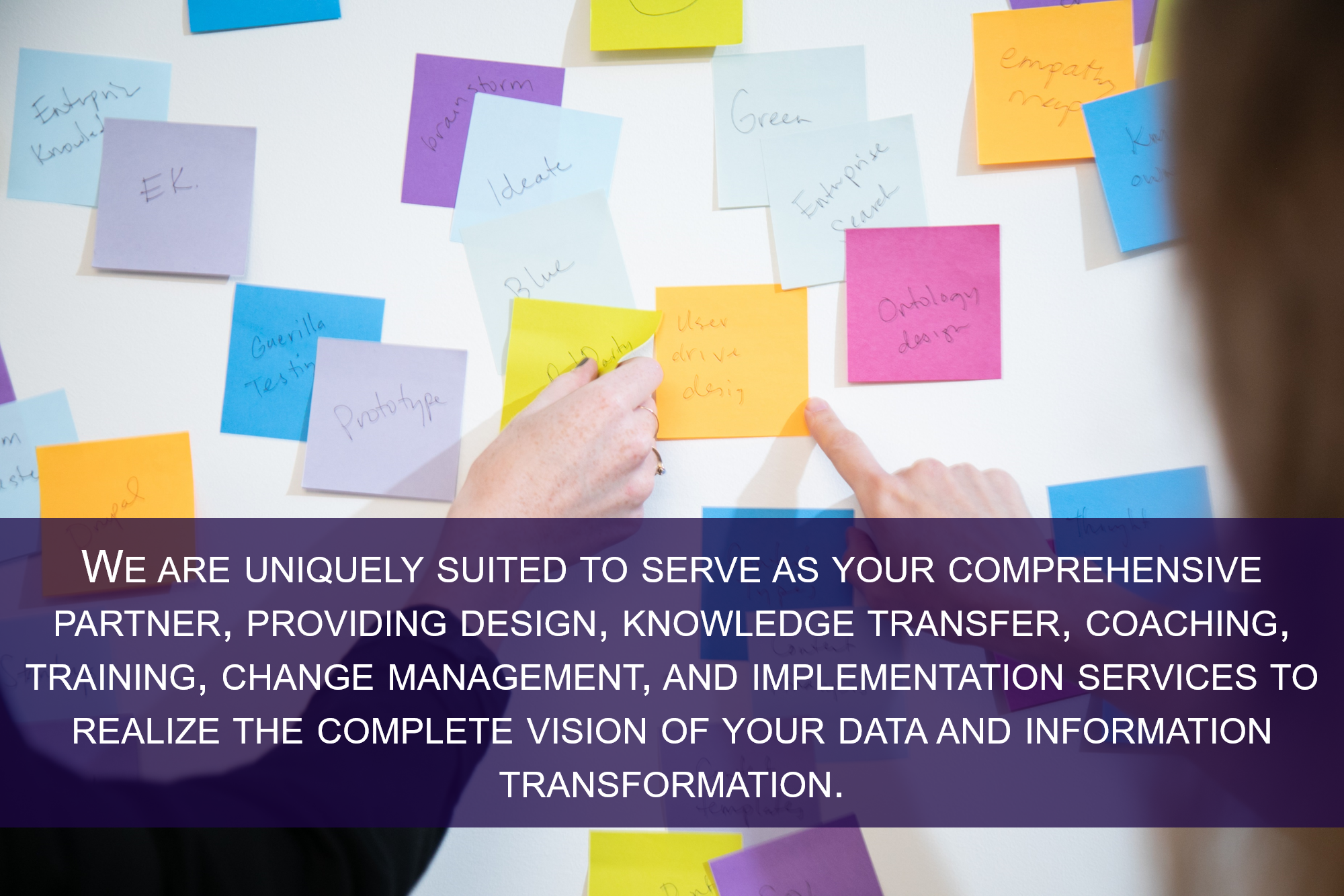 Design and implement advanced information and data solutions that are tailored to your business. Bridge organizational silos, connect diverse domains of knowledge and information, and accelerate holistic decision making.