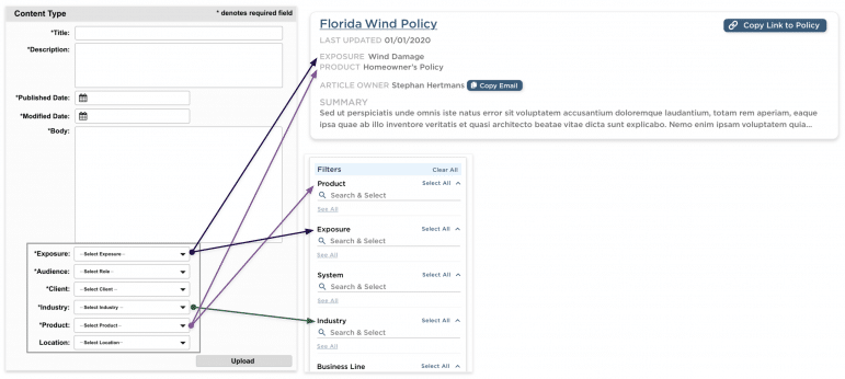Working closely with the organization’s SMEs and system migration team, EK developed an enterprise taxonomy to serve as the nexus between content template design, content governance strategies, and a semantic search experience. Specifically: