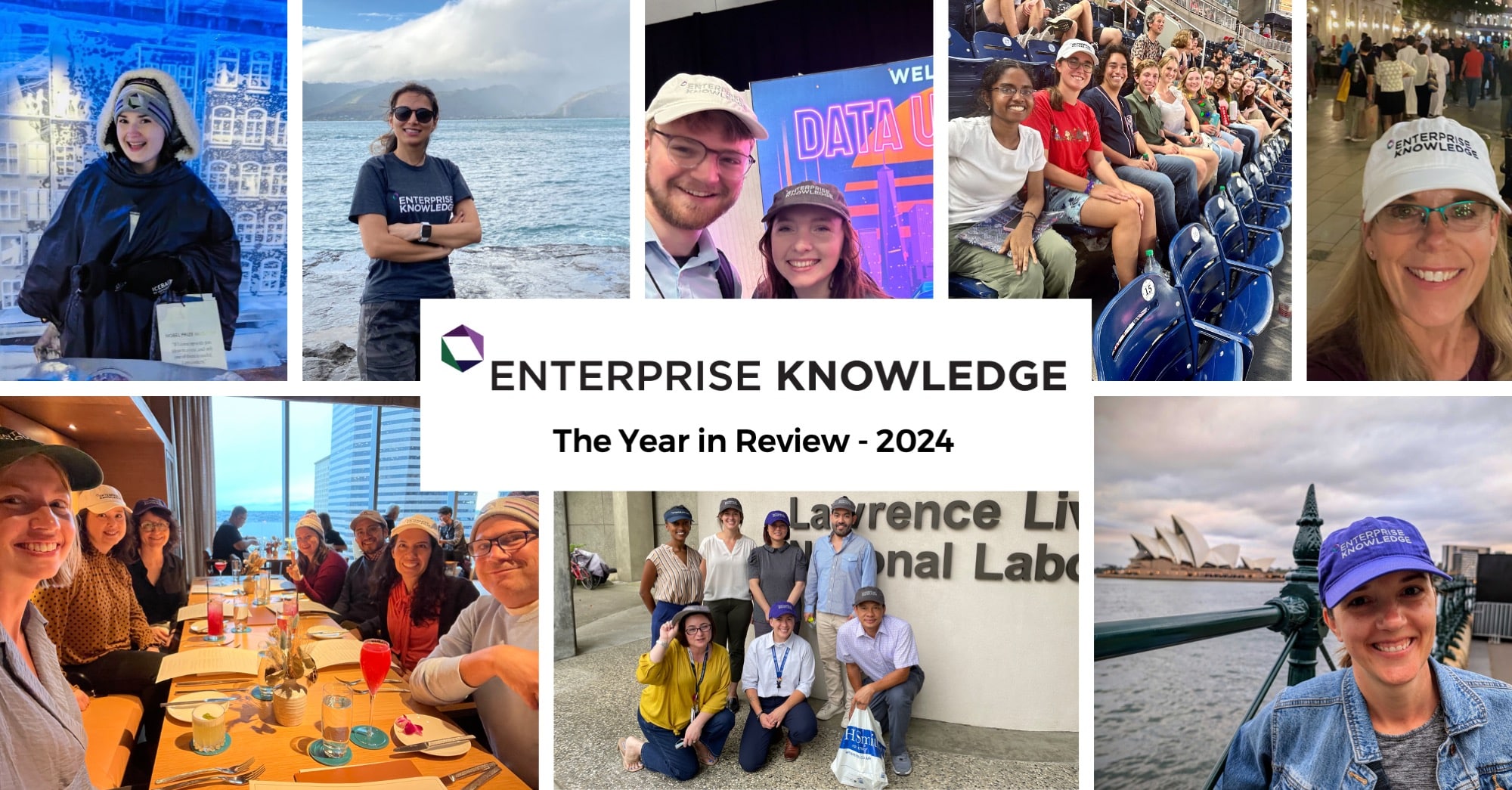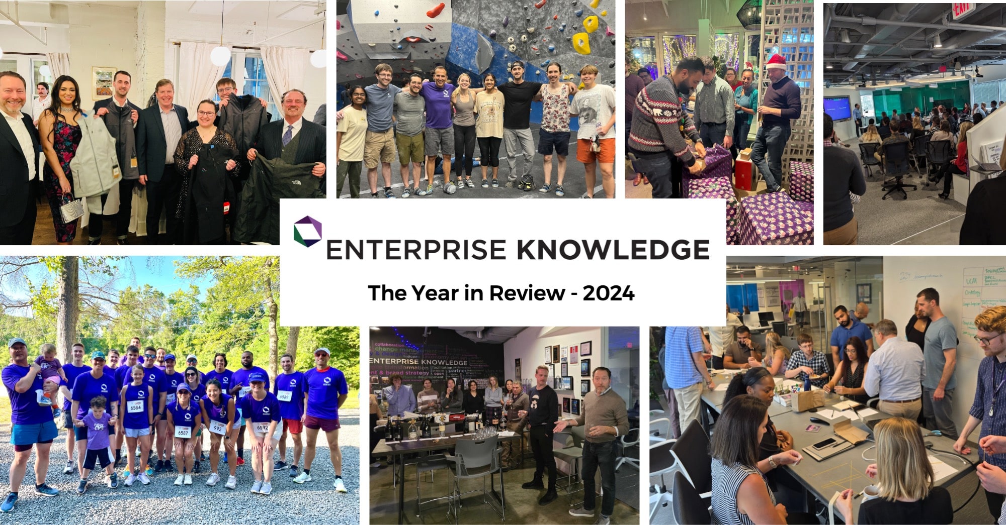Entering the first full week of 2025, I’m happy to share the Enterprise Knowledge year in review for 2024. This has become a long-standing tradition, dating back to 2016. Every year this is a great reminder of how far we’ve come as an organization, the challenges we’ve overcome, and the ways we’ve chosen to lead the industry. For me, it is a great opportunity to reflect, thank our team for making EK what it is, and share some of our milestones and accomplishments with the community.