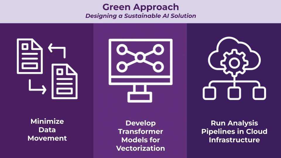 Technique in Action: Global Energy CompanyIn our engagement with the global energy company, EK used a green approach to design their AI-Powered Digital Footprint Calculator. Green information management is a strategic approach that emphasizes minimizing the environmental impacts of information-related processes within an organization. EK’s design included running analysis pipelines in cloud infrastructure in under-utilized regions or regions powered by renewable energy, using existing transformer models that required less storage space, and minimizing data movement to reduce energy consumption. The design features improved the sustainability of the AI approach. Sustainably designed AI can be used to decrease an organization’s carbon footprint. The global energy company used the AI-Powered Digital Footprint Calculator to identify duplicate content and evaluate options for handling it. The AI-Powered Digital Footprint Calculator was predicted to help the organization reach their 15% target deduplication rate, enabling them to remove over 34,000 kilograms of CO2 from the environment, the same as 20 flights from New York to London. This meant fewer storage costs, both financial and environmental, where the company would not only pay fewer annual fees on unnecessary storage needs but also reduce hundreds of tonnes of CO2 emissions annually. |