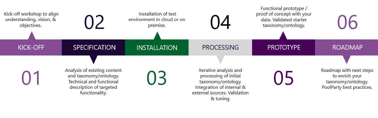 We implement PoolParty in a reusable and scalable proof of concept instance to help you achieve next generation knowledge integration across your organization.